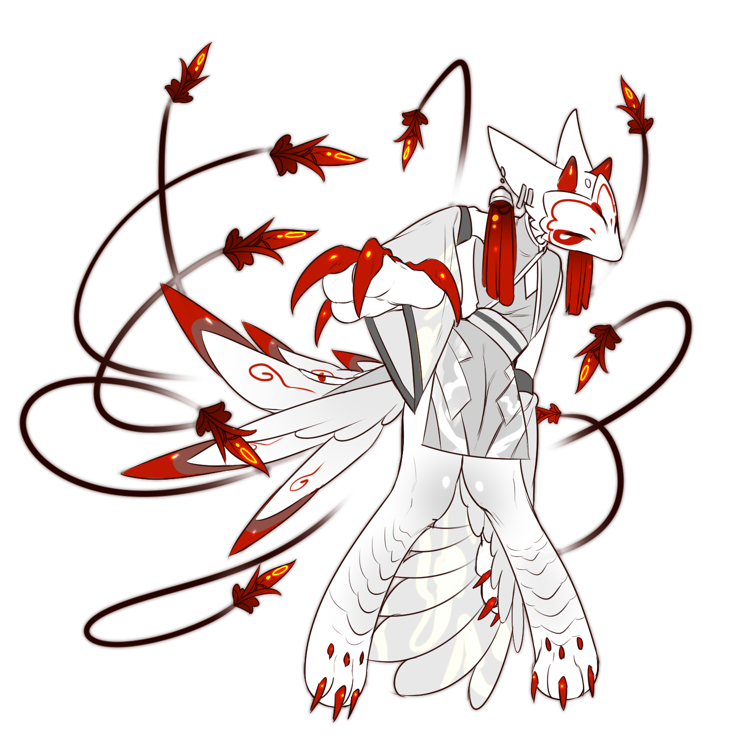 얼핏 보기에는 아홉 개의 꼬리로 착각할 수 있으나, 깃털로 된 하나의 꼬리가 진짜 꼬리입니다..